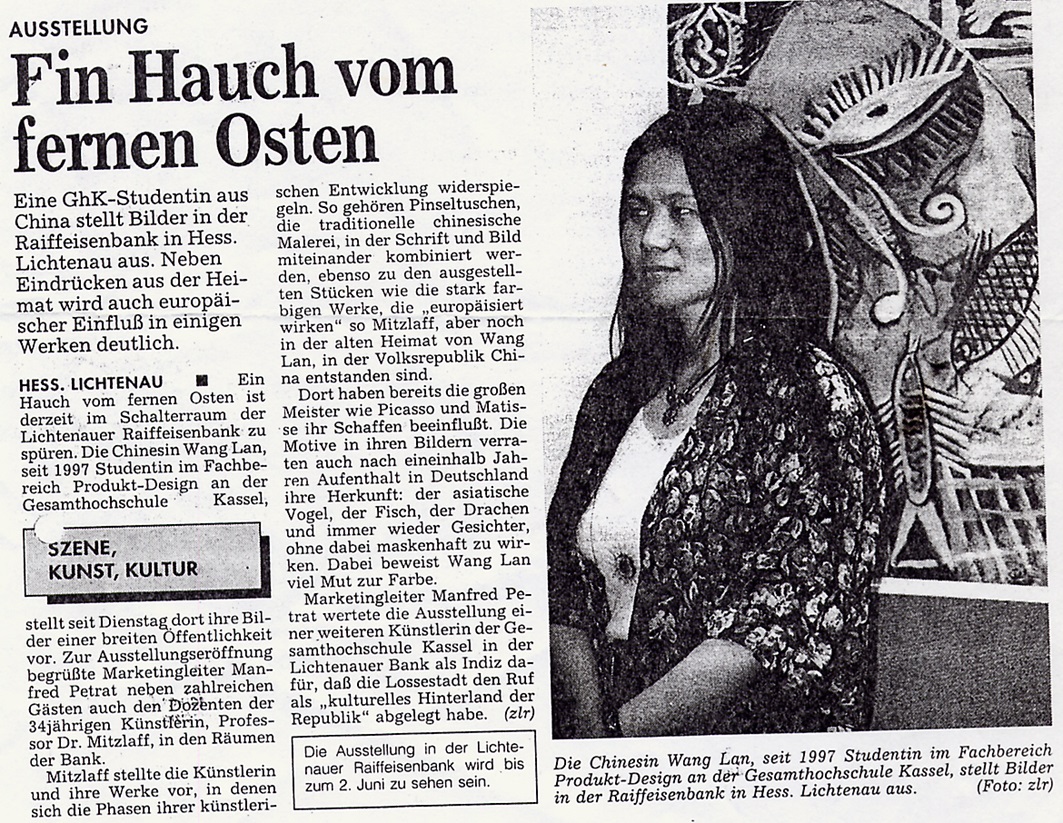 - Sep. Soloausstellung, „Begegnung östlicher und westlicher Kultur“ Galerie im Hühnerstall,