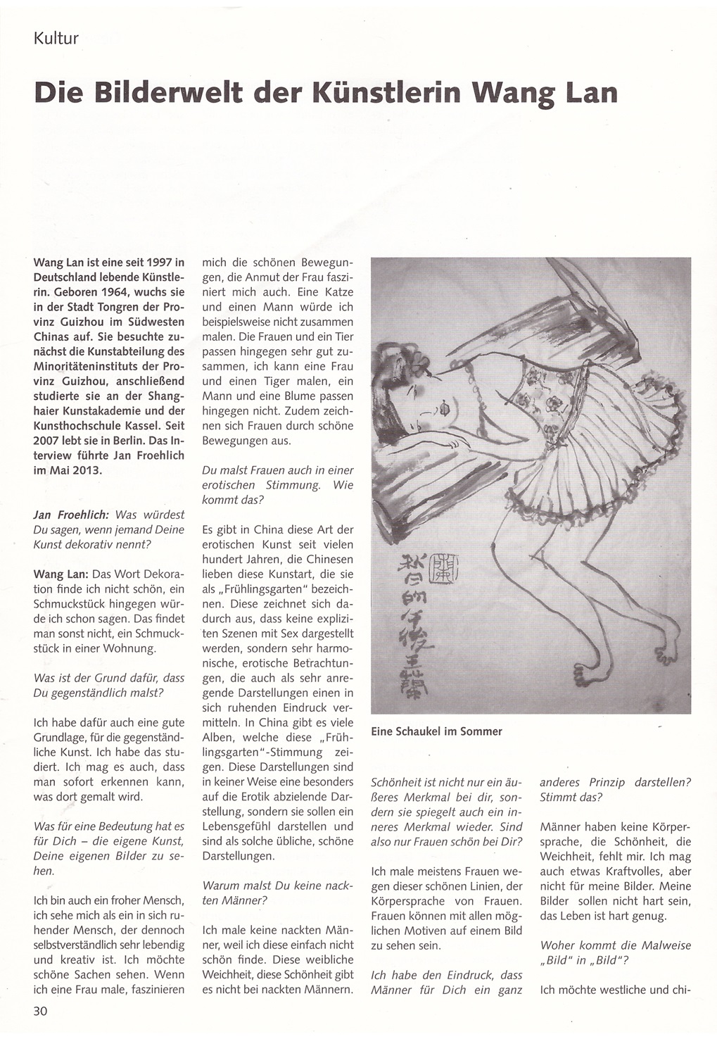 - Nov. Soloausstellung, Konfuzius-Institut an der Freien Universität Berlin „der Traum von Glück“