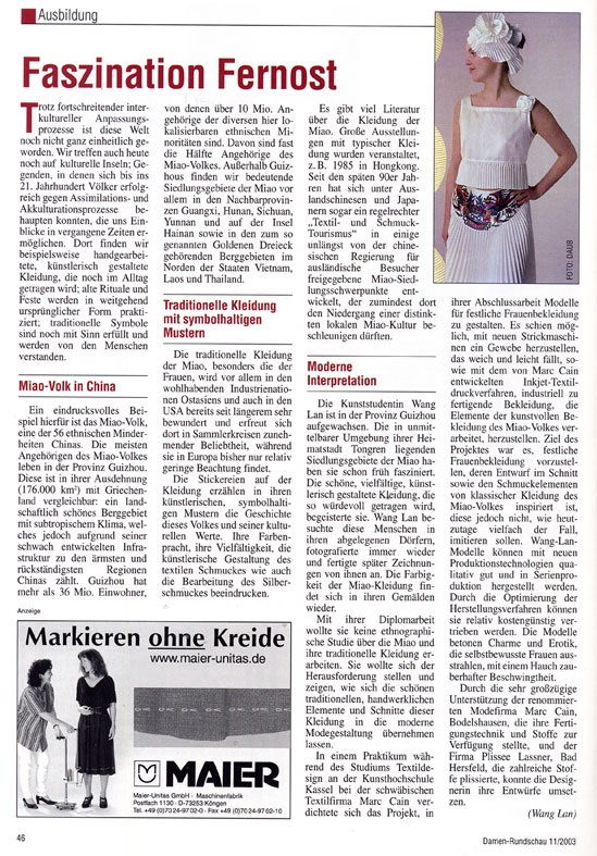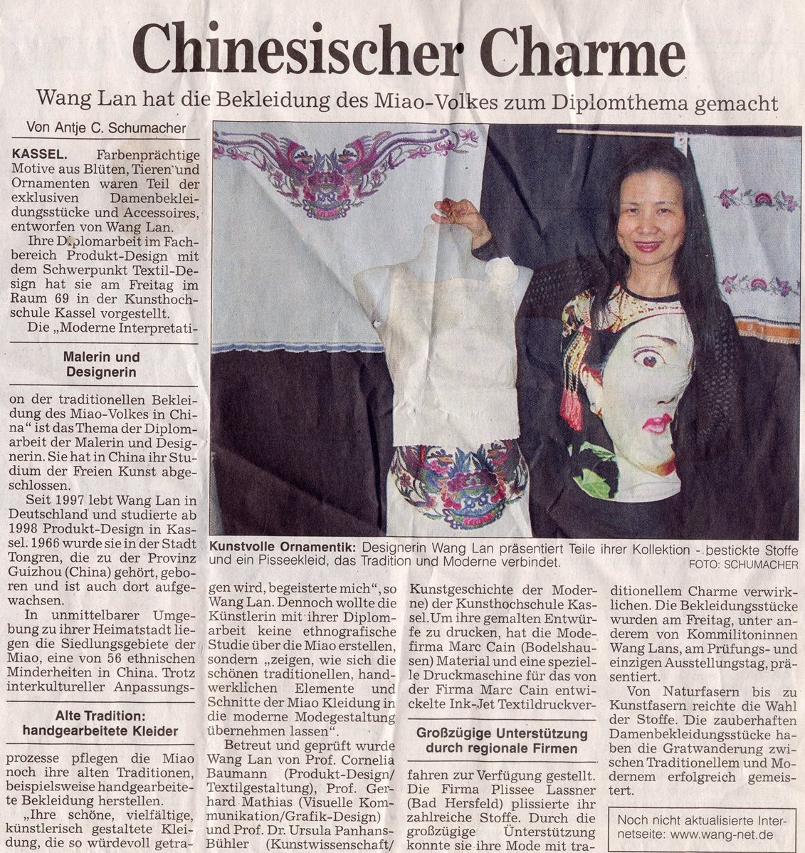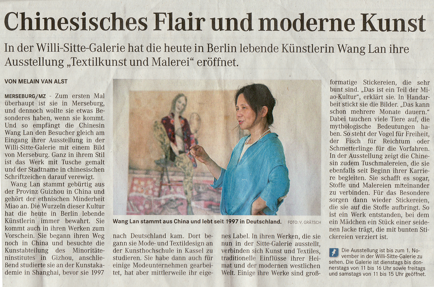 WANG Lan kommt aus der Provinz Guizhou, China und ist dort aufgewachsen mit Wurzeln in der Miao-Kultur, einer ethnischen Minderheit. Sie wurde zunächst in traditioneller, klassischer Tuschemalerei an der Kunsthochschule des Minoritäteninstituts der Provinz Guizhou und an der Kunstakademie Shanghai ausgebildet.