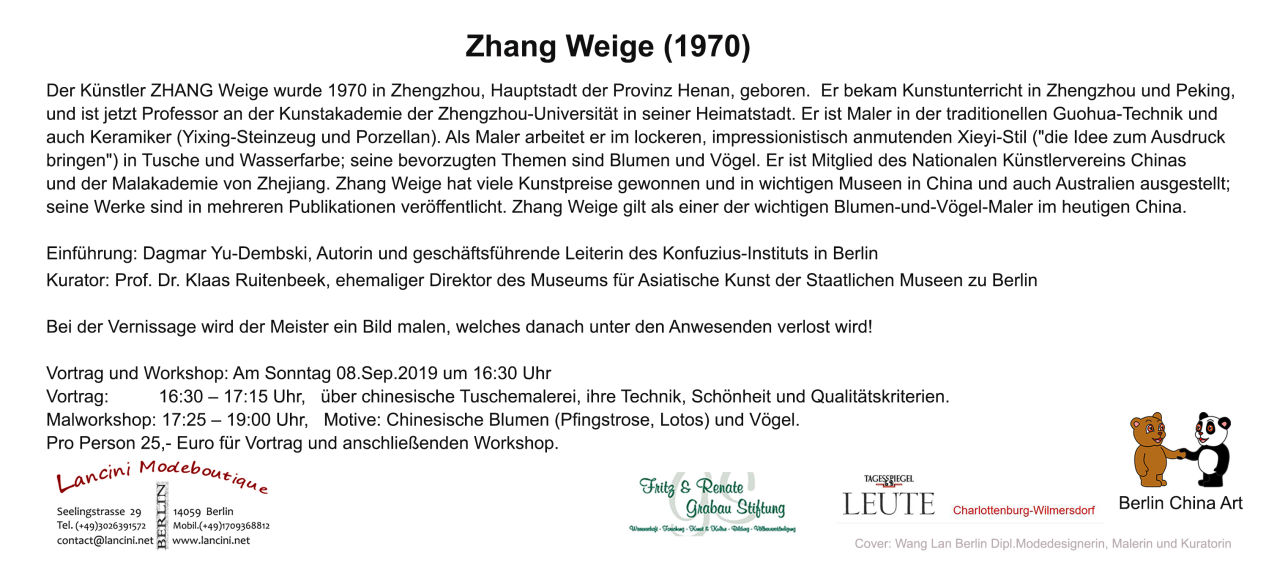 und der Malakademie von Zhejiang. Zhang Weige hat viele Kunstpreise gewonnen und in wichtigen Museen in China und auch Australien ausgestellt;